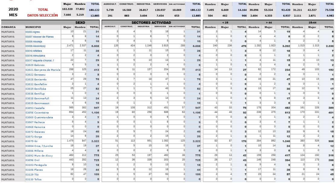 Han sigut 1.100 els llocs de treball destruïts durant el mes d’abril a la muntanya alacantina, xifres pràcticament calcades a les del mes de març. L’única diferència és que el ritme de destrucció de d’ocupació al mes de març fou superior, ja que les dades es van donar en solament dos setmanes. En només dos mesos, les comarques de l’Alcoià, El Comtat i la Foia de Castalla han vist com es perdia bona part de l’ocupació generada durant els darrers anys de recuperació econòmica després de la crisi del 2008.