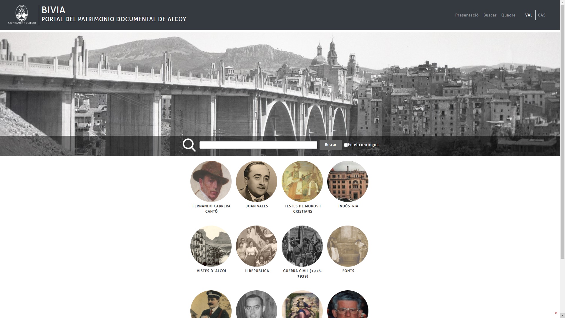 La Biblioteca Virtual d’Alcoi (BIVIA- https://bivia.info/) és un projecte de difusió digital del patrimoni documental de la ciutat d’Alcoi impulsat per la Xarxa de Biblioteques Municipals i l’Arxiu Municipal d’Alcoi. En BIVIA es poden trobar col·leccions digitalitzades procedents de fons municipals, així com d’altres fons pertanyents a entitats col·laboradores en el projecte.