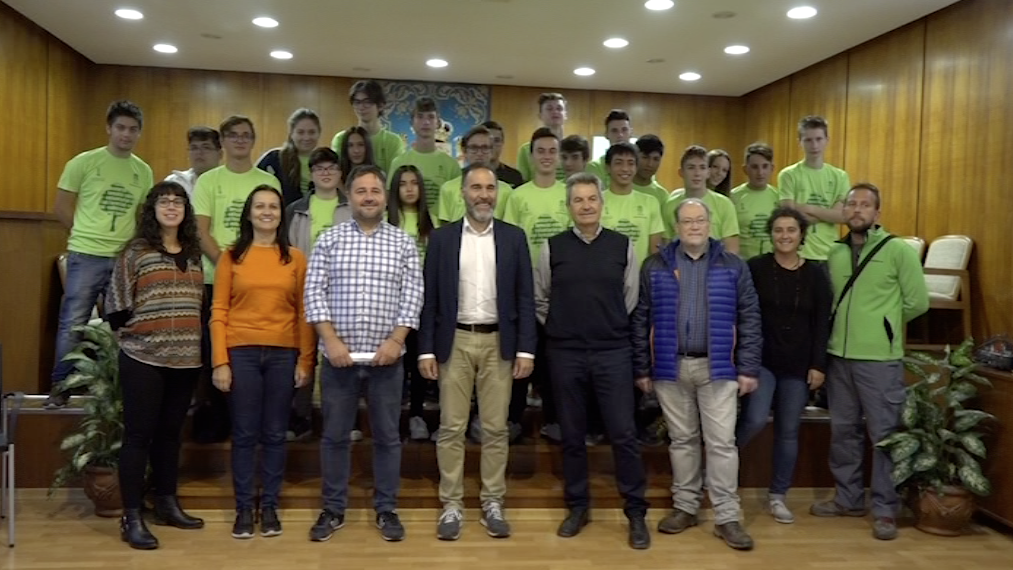 Alumnes d’FP Bàsica en la signatura del conveni amb l’Ajuntament