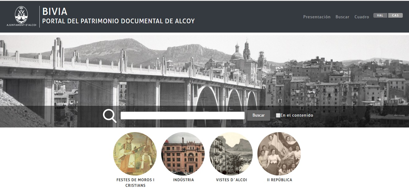 Portada de la pàgina web de la biblioteca virtual d’Alcoi BIVIA