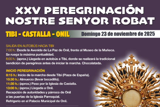 La Peregrinació del Nostre Senyor Robat entre Tibi i Onil obri inscripcions i es celebrarà el 23 de novembre