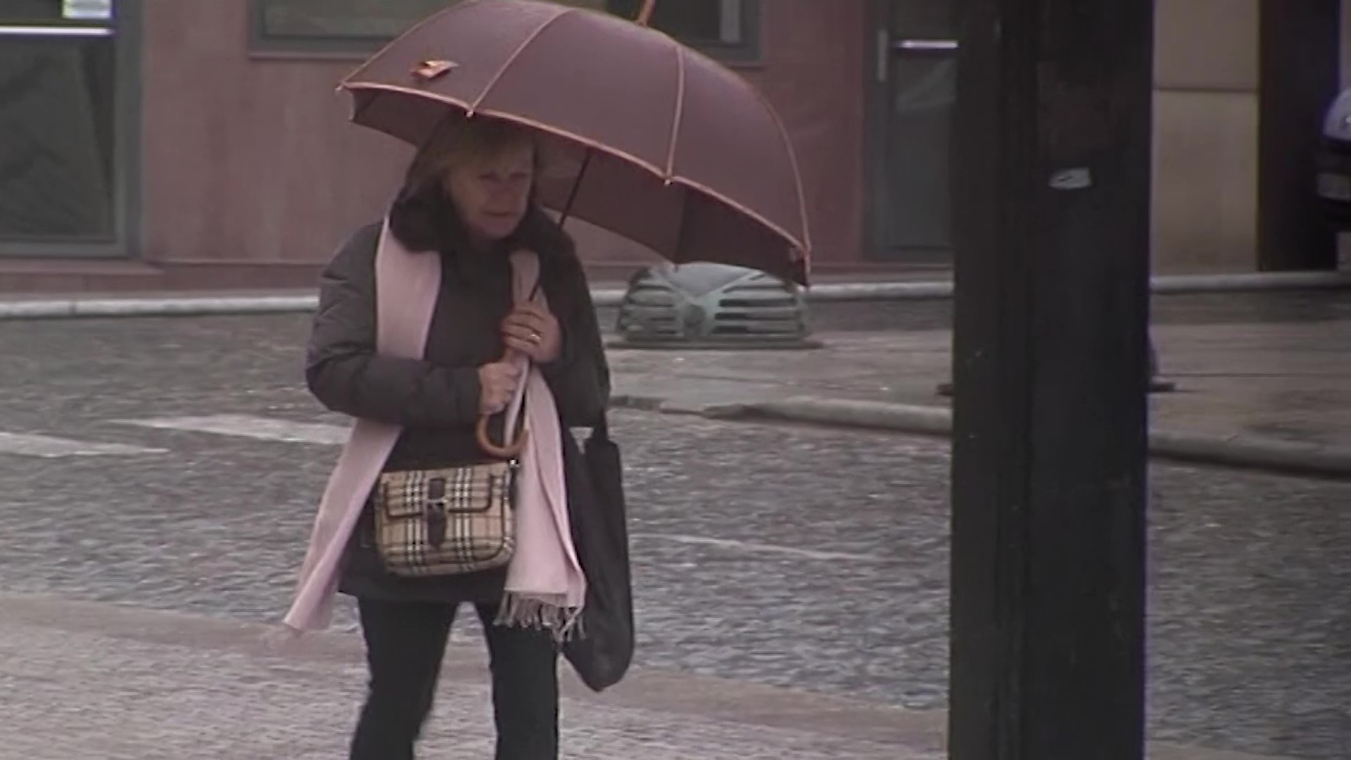 Una dona es tapa de la pluja a la Bandeja d’Alcoi, en una imatge d’arxiu