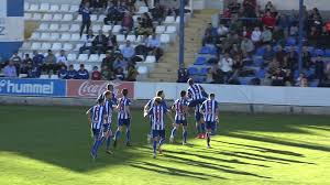 Els jugadors del C.D. Alcoyano celebren un gol aquesta temporada al Collao