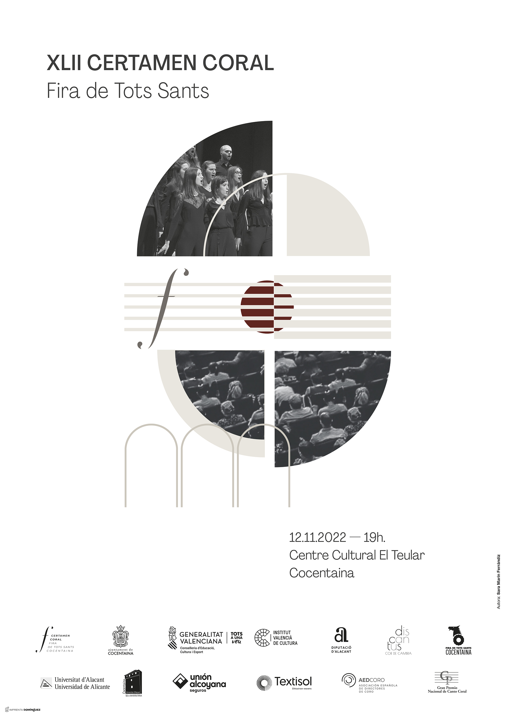 El Certamen Coral Fira de Tots Sants de Cocentaina ha donat a conéixer el seu cartell anunciador, així com les diferents agrupacions seleccionades per participar en l’encontre. En aquesta 42 edició del Certamen, l’organització ha encarregat el cartell a la dissenyadora gràfica Sara Marín, natural de Cocentaina. Sara va guanyar el concurs del Cartell de la Cavalcada de Reis Mags d’Alcoi el 2020, i seleccionada als Premis Mestre d’Alcoi i als Premis Gaudeamus Projecta 5a Edició de Barcelona, tots dos en 2022.