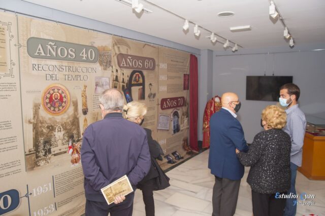 El pati del MAF va ser testimoni dijous passat 22 d’octubre de l’acte d’inauguració oficial de la mostra “El temple, la seua història i cent anys viscuts” que s’exhibirà fins al 21 de gener de 2022 a la sala Fernando Cabrera i en les parets de la qual es recull gran part de la vida de l’Església de Sant Jordi. L’Associació de Sant Jordi pretén amb aquesta exposició donar una informació més il·lustrada i visual dels cent anys viscuts.