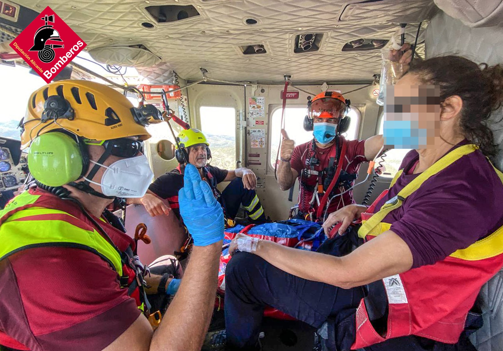 El bombers han hagut d’intervindre entorn a les 13:30h de hui dimecres en el rescat d’una dona de 55 anys amb posible fractura de tíbia i peroné a la Serrella prop del cim “Pla de la casa”. La dona ha estat traslladada des de Quatretondeta fins al parc de Sant Vicent on l’esperaven els serveis sanitaris per atendre-la.