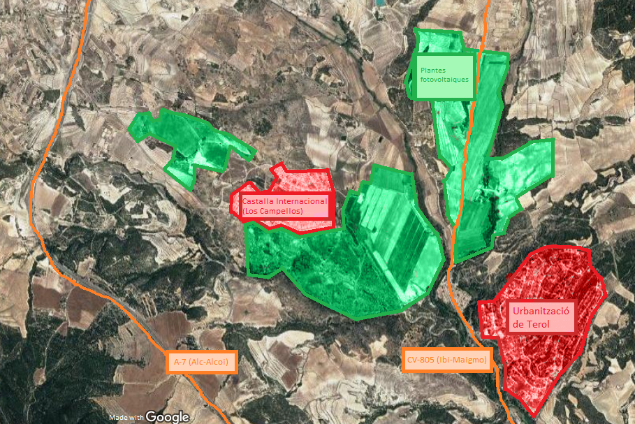 L’Associació de Veïns de ‘Los Campellos‘ de Castalla manifesta la seua preocupació davant l’instal·lació del projecte de plantes solars ‘FV CASTALLA’ que serà instal·lat al terme municipal de Castalla prop de la zona on viuen. Aquest projecte afecta 217 hectàrees i és conforme al pla General de Castalla, que permet en els sòls del projecte, l’ús ANEU.2 que és l’ús per a la generació d’infraestructures i d’entre altres, d’energia elèctrica.