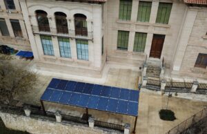 La instal·lació de plaques solars al sostre del Teatre Calderón d’Alcoi...