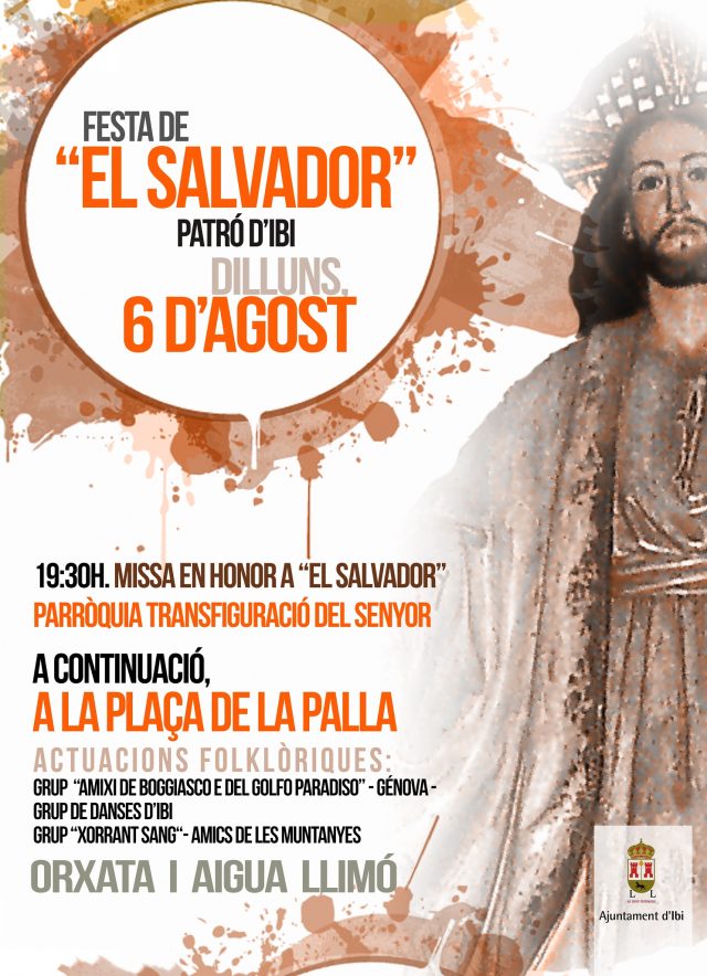El proper dilluns 6 d’agost els veïns d’Ibi celebraran la festivitat de “El Salvador”, patró de la localitat. Així, es celebrarà una missa en honor al sant a les 19:30h en la Parroquia de la Transfiguración del Señor.
