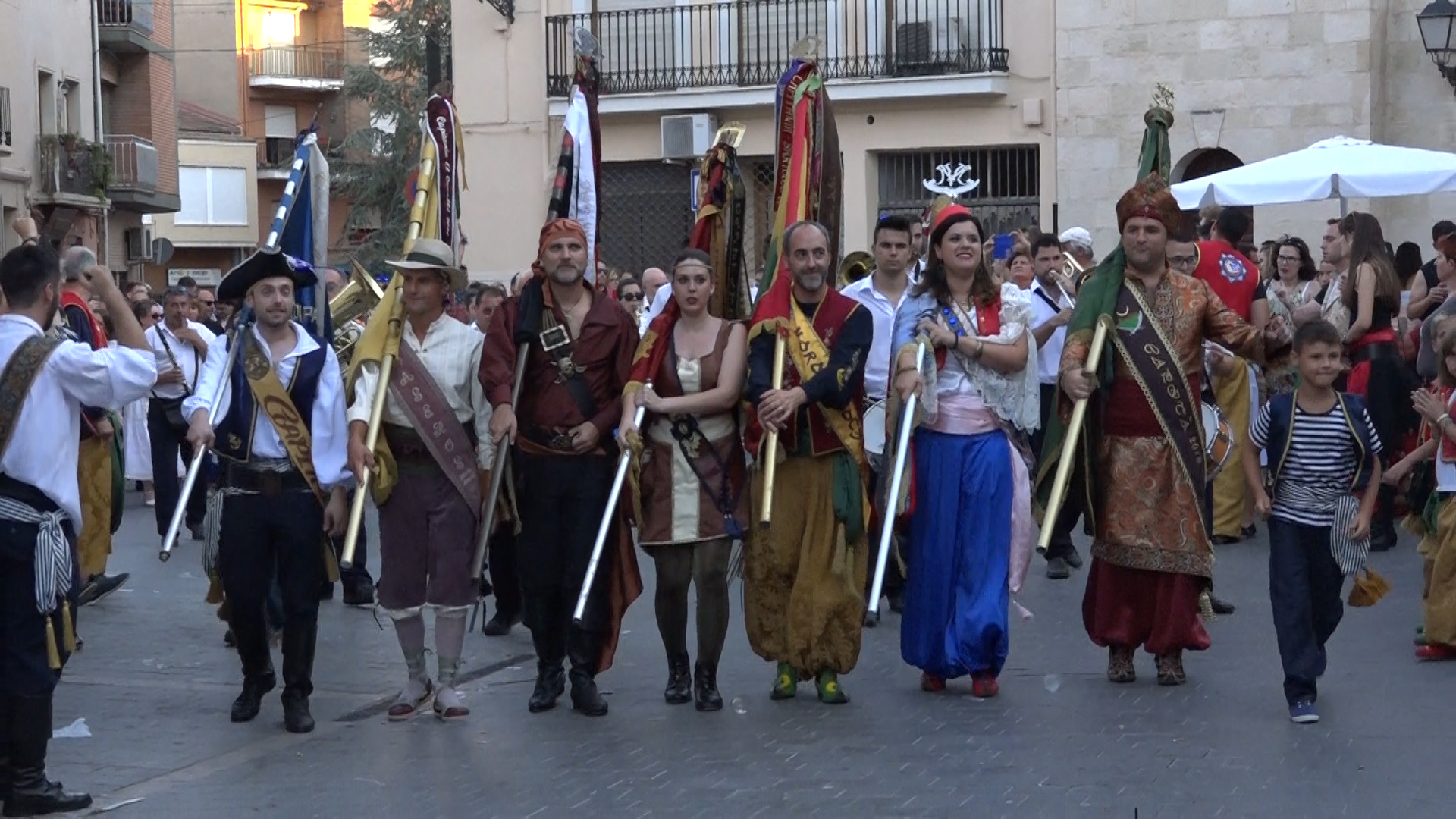 Per la vesprada els festers i festeres es dirigiren cap a l’església per tal de beneir les banderes que representen cadascuna de les comparses. Al finalitzar, va tindre lloc pels carrers de Castalla la gran desfilada per a avisar a tot el món de que les festes estan molt pròximes. El moment emotiu de la ballà de banderes va ser l’encarregat de posar punt i seguit a uns festejos que convertiran a Castalla en la capital de la festa dels Moros i Crisitans de l’1 al 4 de setembre.