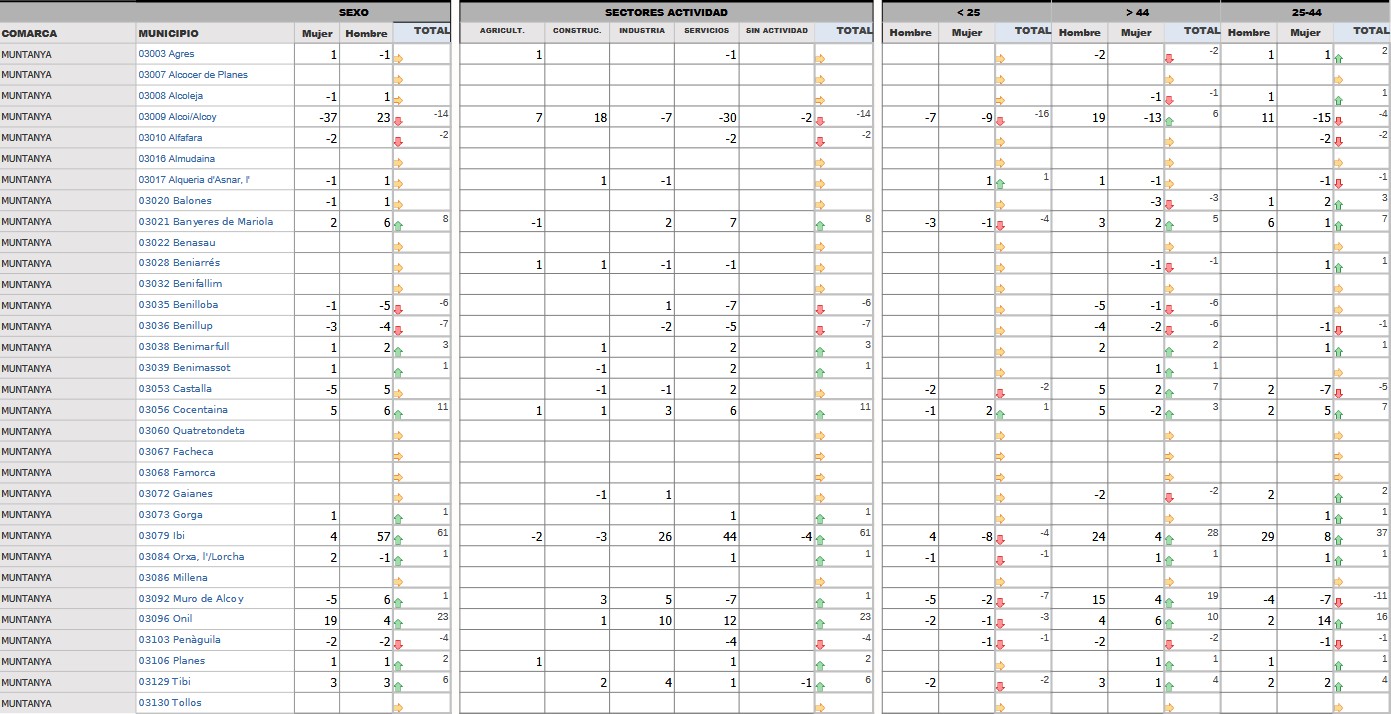 Durant el mes de desembre Ibi ha registrat 61 persones més sense ocupació que al novembre, seguida per Onil amb 23 més, Cocentaina amb 11 i Banyeres amb 8. En el costat contrari es troba la ciutat d’Alcoi, que ha davallat les xifres de l’atur en 14 persones. Una realitat que també s’ha donat a Benillup, Benilloba o Penàguila, que han vist davallar les dades de l’atur en 7, 6 i 4 persones respectivament.