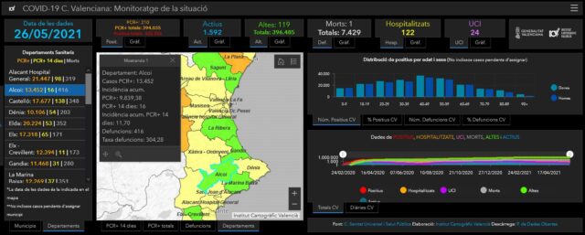 Totes les localitats de l’Alcoià, El Comtat i la Foia de Castalla es troben per davall dels 25 punts que marquen l’estat de ‘nova normalitat’ a excepció de Castalla. La capital de la sub comarca de la Foia supera els 28 casos/100.000 habitants en una actualtizació en la que la muntanya no ha hagut de lamentar més morts per Covid19, xifra congelada en les 416 víctimes mortals. L’Hospital Verge dels Lliris segueix sense ingressos per coronavirus, ni en planta ni en UCI.