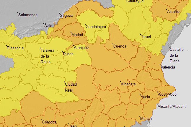 L’entrada d’una massa d’aire calent procedent d’Àfrica està portant temperatures per damunt dels 40 graus a Andalusia i les dos Castelles, així com a Extremadura i la Comunitat de Madrid. Pel moment, la Comunitat Valenciana esquiva aqueta situació de màximes, encara que no ho farà per molt més temps. El mercuri pujarà tant aquest dimarts com el dimecres 9, encara que arribarà al màxim el dijous 10.