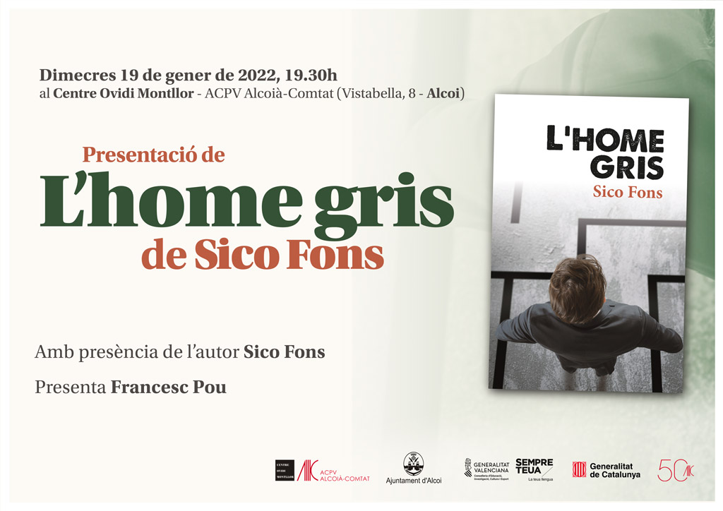 El dimecres 19 de gener al Centre Cultural Ovidi Montllor d’Alcoi a les 19:30h tindrà lloc la presentació del llibre “L’home Gris” de Sico Fons.